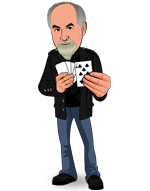 Still... The performer finds all three cards, handing each to the proper person WHILE BLINDFOLDED, even causing one card to change to another's spectator's card in their own hands, while the original card ends up in the performer's pocket... all while legitimately BLINDFOLDED... and with no palming required!