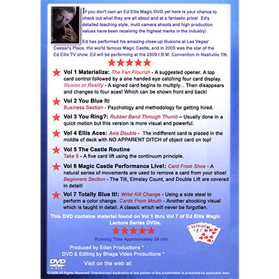 This DVD contains material found on Vol 1 Thru Vol 7 Ed Ellis Magic Lecture Series DVD.