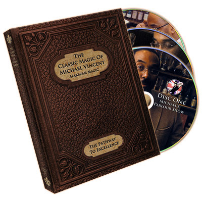 "The present triple DVD set by Alakazam is first-rate all the way. With videography by Russ Stephens using two cameras, and luxurious packaging by Peter Nardi's Alakazam, Michael is shown in parlour and close-up settings performing and explaining twelve effects and about the same number of sleights.