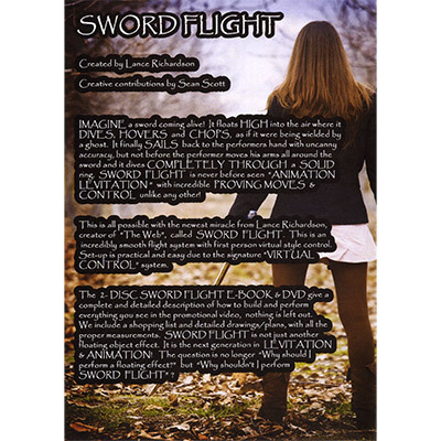 The 2-Disc Sword Flight e-book and DVD give a complete and detailed description of how to build and perform everything you see in the promotional video, nothing is left out. We include a shopping list and detailed drawings/plans, with all the proper measurements. Sword Flight is not just another floating object effect. It is the next generation in Levitation and Animation! The question is no longer "Why should I perform a floating effect?" but "Why shouldn't I perform Sword Flight?"