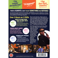 Now, in The Modern Con Man Collection, Todd shares his catalog of cons and playful scams. This 3 DVD set shows you how easy it is to scam, bet, and trick your way to a free drink, a few extra bucks at the poker table, and laughs at the expense of your co-workers. Expect to make friends too, with this fun, tongue-in-cheek guide to suckering those you love - and those you'd like to know.