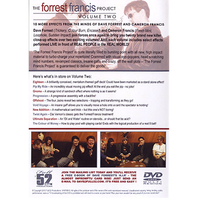 The Forrest Francis Project is one of Full 52's most anticipated releases ever! Two volumes, each containing 10 new, never before seen effects from the creative minds of Dave Forrest and Cameron Francis!