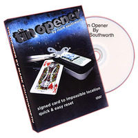 From the creative mind of Mark Southworth comes the brand new effect, Tin Opener. Tried and tested in front of live audiences, Tin Opener can be used to add an unexpected climax to any of your working card routines. A card is selected by a spectator and is signed on the face. The card is returned to the deck openly and fairly. From here the magician proceeds to perform their favourite card routine.