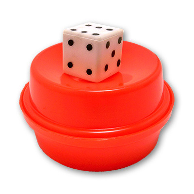 A flat circular plastic box has one die inside. The magician shows this, then puts the lid on the box. He tells the number which will be on the top surface of the die, then he shakes the box, opens it and shows he is correct.