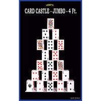 After throwing some cards on the cloth spread on the floor, magician produces a beautiful house of jumbo size cards under the cover of a cloth. A very big stage effect.