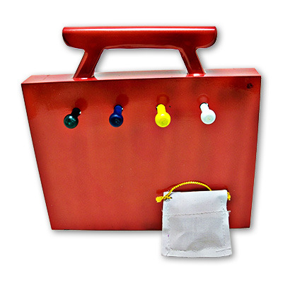 Magician draws attention to an opaque wooden brief-case which has 4 different colored pencils has some dollars hanging on it and the one who chooses the right pencil gets the dollars. Audience is given a free choice but the magician always wins.