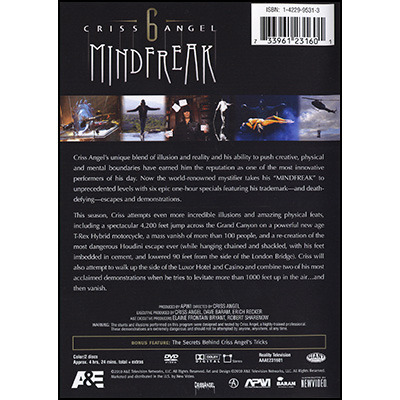 Criss Angel s unique blend of illusion and reality and his ability to push creative, physical, and mental boundaries have earned him the reputation as one of the most innovative performers of his day. Now the world-renowned mystifier takes his Mindfreak to unprecedented levels with six epic one-hour specials featuring his trademark and death-defying escapes and demonstrations.