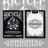 The Enigma Deck, Bicycle Playing Cards. This amazing one of a kind deck was produced in a "one time only very limited run". The deck is printed on high quality "Bicycle" stock and "Air Cushion" Finish. The deck has the "Signature Enigma" art work, on the "Ace of spades", "Jokers" and Box. The deck also has two blank face cards for performing. The bar code on the bottom of the box say's "Queen of Hearts" The Artwork was created by "Martin Adams" This deck is a rare treasure and a collectors dream