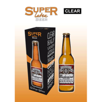 A transparent beer bottle that looks 100% real and that is sealed for liquid so it can be full with real beer as a regular bottle!