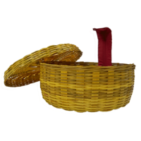 The magician borrows a tie from a member of the audience. The tie is placed into a wicker basket. The magician casts a sell upon the tie... then, slowly and magically the tie starts to rise out of the basket like a snake under the spell of a snake charmer. (The cobra tie can even reveal a card selection.) The tie then lowers itself back into the basket and is then given back to the audience member. The mechanical gimmick inside basket makes his effect is very easy to perform.