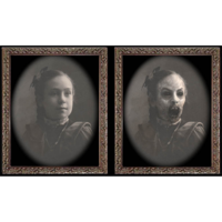 These high-quality pieces are a truly unique form of art, yet still affordable for the average "home haunter." Use them to spice up a Halloween Party, a Haunted House maze, or your own year-round ghostly gallery! No batteries, electricity, or special lighting required! Just put the portrait in a frame and the ghostly entities will do all the work!