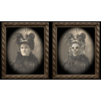 These high-quality pieces are a truly unique form of art, yet still affordable for the average "home haunter." Use them to spice up a Halloween Party, a Haunted House maze, or your own year-round ghostly gallery! No batteries, electricity, or special lighting required! Just put the portrait in a frame and the ghostly entities will do all the work!