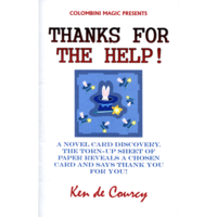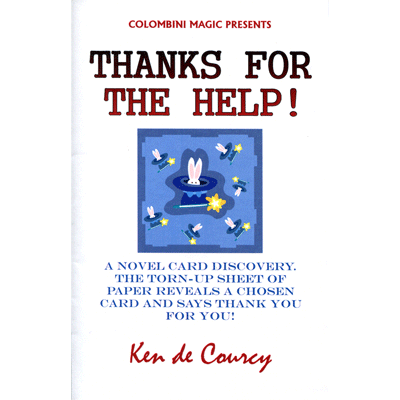 A deck is examined and shuffled, then one card is selected and left face down on the table. The magician removes a square of paper from his pocket, a square covered on both sides with letters. This square is torn up into sixteen pieces and when laid out in a line, they are seen to spell out the name of a card, for example THE ACE OF DIAMONDS. The card is turned over and proves to be the Ace of Diamonds. The spectator is then asked to turn over each letter. Now a new message is spelled out: THANKS FOR THE HELP!