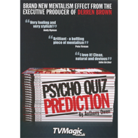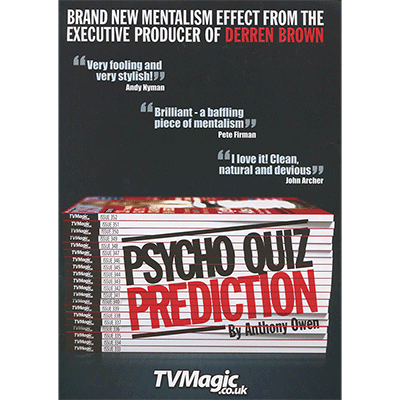 A random spectator is asked to answer out loud three questions from a psychological personality quiz on the back page of a genuine issue of Cosmopolitan magazine (USA edition. Please note magazine is not included. Purchasers are given details of how to easily obtain copies outside of the USA). Amazingly you have correctly predicted in advance with a three stage prediction exactly which answers they will give. Three big, amazed reactions from the audience are guaranteed from just a magazine. No one ahead (all three predictions are written before anything is said by the spectator).