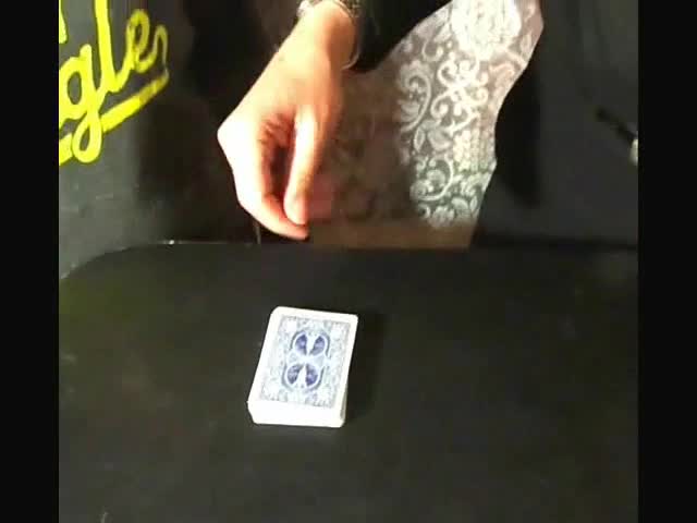 Effect: The performer shows a deck of cards to be well mixed while removing the two Jokers from the deck. He hands the deck to a participant to cut as many times as he likes. The performer tells the participant to stop cutting anytime he likes and that the top card of the deck will be his selected card. The performer asks the participant to look at the top card of the deck while the performer looks away. The participant is then instructed to take his selected card, push it into the center of the deck anywhere he likes, and square the deck. Once he has done so, he tells the performer who turns around and takes the deck saying he will give it one cut. The performer cuts the deck once and places it on the table face down. The selection of the card is a free choice and there is no force used.