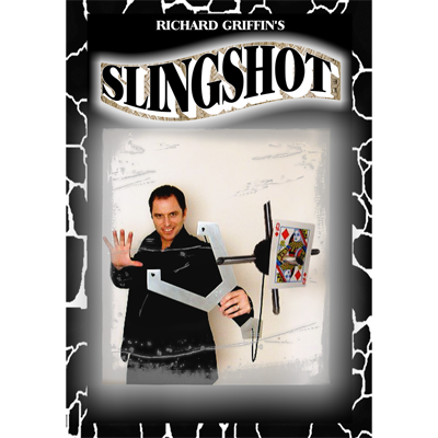 A card is chosen and shuffled back into the pack. A large aluminum slingshot is shown and a spiked ball is placed into it. Spectator throws the cards into the air and the magician shoots the spiked ball into them. One card is caught on one of the spikes. It's the chosen card.