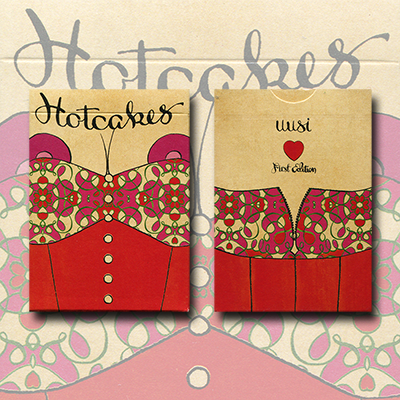 Hotcakes is the fifth Limited Edition deck in Uusi's six-deck series. With every deck we create we try to use a new medium so each one has it's own distinctive look. For Hotcakes we chose tempera paints and markers to compliment the spontaneity and playfulness of it's full-figured, burlesque monarchy and the Pop Art style of this deck.