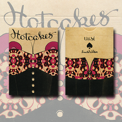 Hotcakes is the fifth Limited Edition deck in Uusi's six-deck series. With every deck we create we try to use a new medium so each one has it's own distinctive look. For Hotcakes we chose tempera paints and markers to compliment the spontaneity and playfulness of it's full-figured, burlesque monarchy and the Pop Art style of this deck.