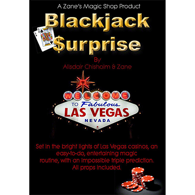 "After my last trip to Las Vegas, I came up with Blackjack Surprise, and then worked with my magical friend Zane to turn it into an entertaining routine. It is set in Vegas, fun to perform, with lovely props, plays well to all audiences, has a big ending, and it doesn't take up much pocket space" - Alisdair Chisholm