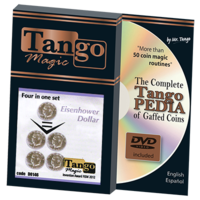 The magician shows four Eisenhower dollar coins in his hand, then takes one of the coins and brings his pocket, when you reopen your hand has 4 coins again.