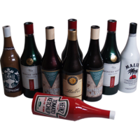 A bottle and glass are covered with 2 cardboard tubes - they change places - this happens a few times, but as the performer progresses more and more bottles are removed from the tubes until 9 of them are produced.