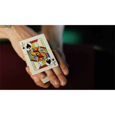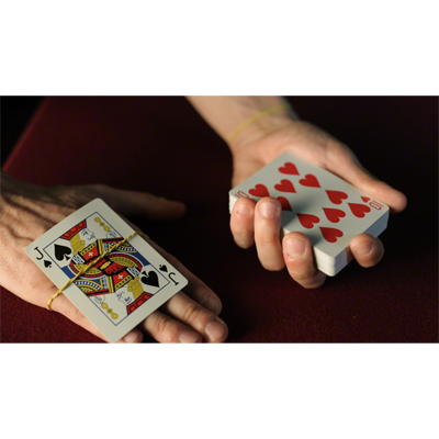 Watch as Dan selects two cards, then securely ties them down with a rubber band, only to see one selected card escape outside its confinement, to the top of his hand. In a shocking moment, you see one selected card instantly and visually trade places with the card on his hand, only to find that they have switched places, all while tied down, just like the timeless illusion, Metamorphosis that Houdini & Bess were famous for.