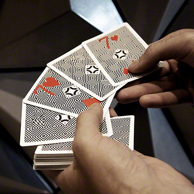 The new Mechanic Optricks deck has been stripped of all embellishments and showcases what 'less is more' really means. Composed of simple black and white lines structured in a geometric retro style pattern, just looking at a card starts causing mayhem for your eyes! Riffle through the cards to really make the magic happen. Kitted out with a hypnotising & mesmerising animation that will enhance and give narrative to your magic performances, as well as just looking damn cool!