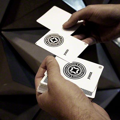 We've created an awesome new feature that allows you to visually reveal a card in the flip-book animation. The deck also comes with 2 custom Jokers featuring the Grinder coin artwork, as well as an additional Joker gaff and blank facer card. These cards are a creative extension to the deck, like a magic tool kit allowing you to create your own routines.