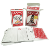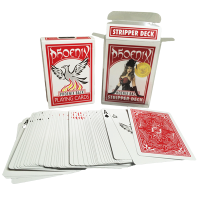 Card-Shark is proud to release its Poker Size "Casino Quality" Stripper Deck. These decks are produced at US Playing Card Company; printed and die cut to their highest quality level. To top that, we even altered the back design by tilting it in proportion to the "Stripper Cut". This keeps the white border at an even measurement the full circumference of the card. No more telltale "thin" border areas.