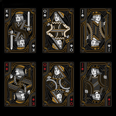 The inspiration for the design is this legend, about the alliance between rich and poor people against a mysterious force to save their kingdom. The deck contains the essence of a story like this, with dark cards, black and white and with customized court cards showing blind royal characters under the influence of that mysterious force.
