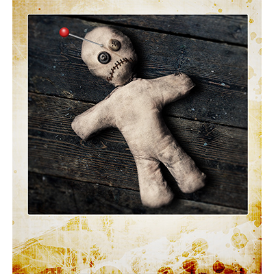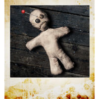 The ritual is now complete, and the chosen photo is turned over - it shows (for example) a voodoo doll with a pin in the left arm.
