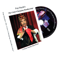 Pop Haydn's presentation of The Color-Changing Handkerchief. This routine is designed for 24" silks, and is a practical, real world piece that packs small and plays big. It literally works out of the pocket and makes an excellent emcee bit, or a nice in front of curtain piece for an illusionist. It can be done silently, or can be a featured routine for a talking standup magician. It works for young folk and adults. It is a fooler, and the patter is sophisticated and entertaining. It plays big on any stage.