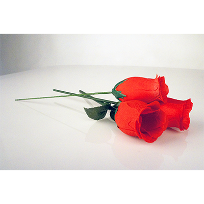 The magician magically produces a rose, then vanishes it with a spark of fire.