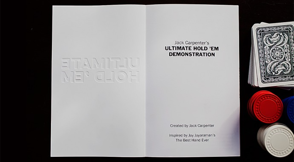Sit down with Jack Carpenter as he deals you in on the secret to a truly incredible gambling routine. The player shuffles, cuts, makes every decision along the way, and without fail, beats the odds for the Ultimate Hold'Em Demonstration.