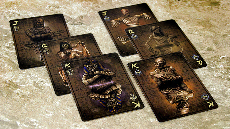 They're raising from the depths of their sandy tombs. The Mummies deck is here and they are hauntingly beautiful. Printed by USPCC and produced by Collectable Playing Cards, it is a frightening new deck to round out your horror collection. Unwrap them to expose the gruesome bunch that will send chills down your spine!