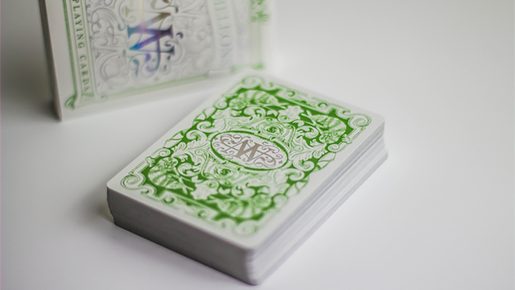 This version comes in a specially designed tuck with a die cut hole so that the beautiful iridescent foil stamped on each card back can be seen even while the deck is safely boxed.