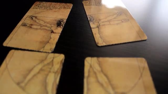 When the black cards are turned over, the spectator realizes that out of all the possibilities that he had; he ended up with the only possibility that makes the 4 pieces shape perfectly the Mona Lisa puzzle that was printed on the face of the cards.