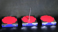 A "Russian Roulette" theme, the props consist of 3 wooden blocks. One with a sharp spike embedded in it. A spectator is invited to cover the 3 blocks with 3 paper cups and mix them. It is impossible to tell which cup has the spike under it. You then dramatically bring your hands down on two of the cups, crushing them. The one with the spike is left untouched.