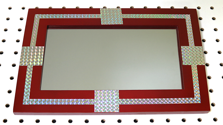 The performer displays a large framed mirror. He taps the mirror with a magic wand proving that it is solid. It is then placed into an appropriate size cloth bag. Holding the bag in one hand, taking a large needle in the other hand, the performer suddenly pushes the latter through the center of the cloth bag, which obviously passes through the mirror in the bag and that creates an uncanny effect upon the spectators. Immediately the performer removes the needle, takes the mirror out from the bag, which is shown to be O.K. and that causes a great surprise to all!