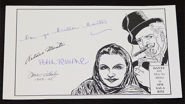About 30 of these book plates were printed for guests who attended Phil Temple's Dante "book party" on October 21, 1991. The Moi-yo Miller and Arturo Montes signatures were obtained on July 24, 1991, and the signatures of "Dolly" Jansen and Marion Trikosko (author of Trouping with Dante) were obtained at the party. Phil Temple also signed the bookplates at the party.