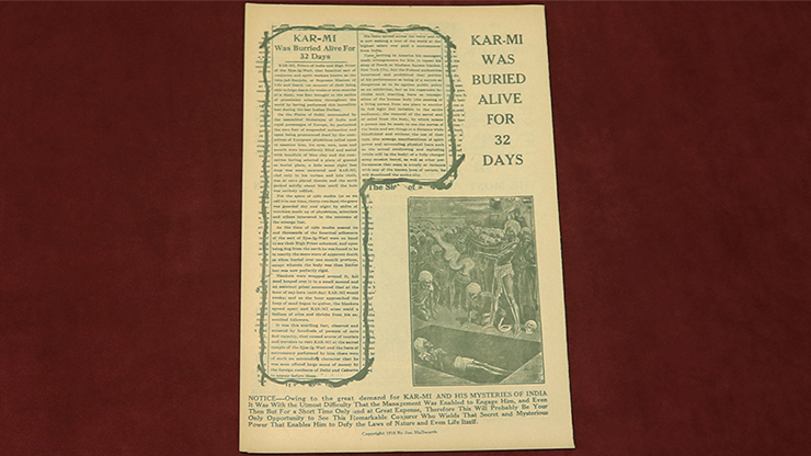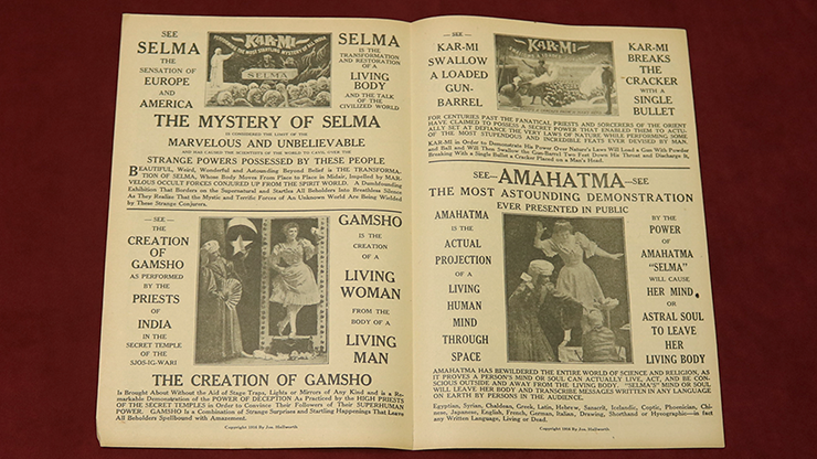 These original 1916 brochures were purchased from a collector in New England after attending a New England Magic Collector's gathering in the late 80s. The brochure reproduces some of the well known and highly collectable Karmi lithographed posters.