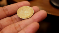 AQUACOIN is a simple gimmick that allows a borrowed coin to freeze on a spectator's hand.