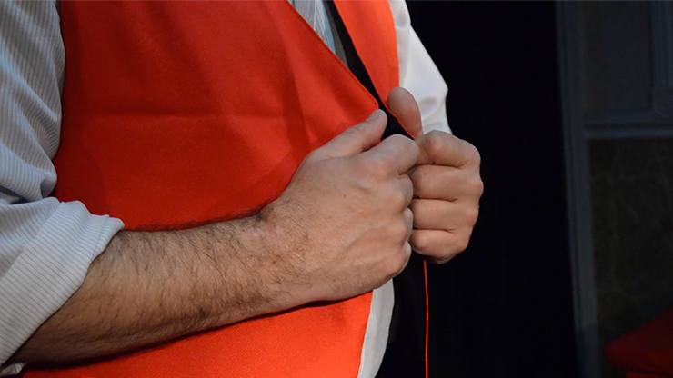 Three different spectators pick any card from a deck. The cards are put back and lost in the deck. The magician says he will find the cards in an elegant way. The deck is put into a bag and amazingly the bag transforms into an elegant vest. The magician puts on the vest and finds all three of the selected cards are inside three different pockets of the vest.