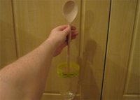 You then prove how "solid" the lolly is. You spin the wand around in the air, causing the glass to rotate fully 360 degrees several times, without any liquid being spilled -- the lolly is "solid."