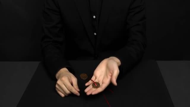 Incredible effects using coins and a ribbon or cord. Coins are magically pulled off of the ribbon in impossible and mind-boggling ways, as well as suddenly appearing on it. Looks impossible!