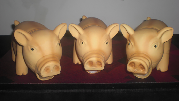1) The Traditional Monte: Show that one piggy oinks and the other two are the "strong silent" types! Mix them up and ask the audience member to keep track of the squealer. Of course, they cannot... that is, unless you want them to!