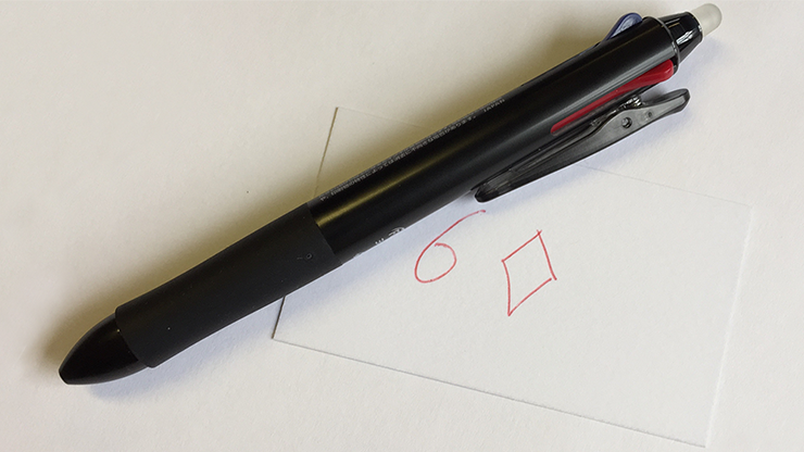 EFFECT: Before or after a card is selected, the magician writes something on a card. All types of comedy byplay can occur, with the magician naming the wrong card, or showing that he has written in a different language, crazy lettering, etc. A simple flame from a lighter will cause gasps in your audience, as the crazy lettering disappears, and the name of the chosen card appears. This looks really magical!