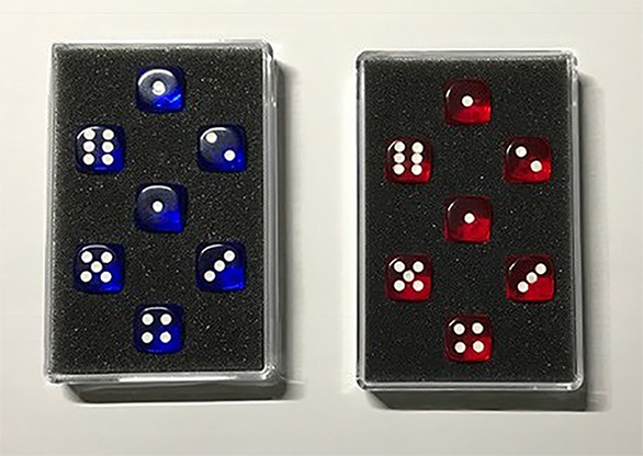 Prediction Gimmicked Dice for Clear Prediction is a set of seven dice -- each 12 mm. Two dice can be thrown into the ladder at the same time. Only the gimmicked face is fabricated. These dice work fine in most types of routines.