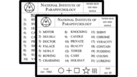 The card appears to be an authentic "Telepathy Testing Card" from the National Institute of Parapsychology.