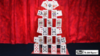 The magician drops cards on a table or tray - it is subsequently covered by a cloth. Within seconds, as the cloth is pulled up and removed -- a card castle approximately 17 inches high appears to be "built."